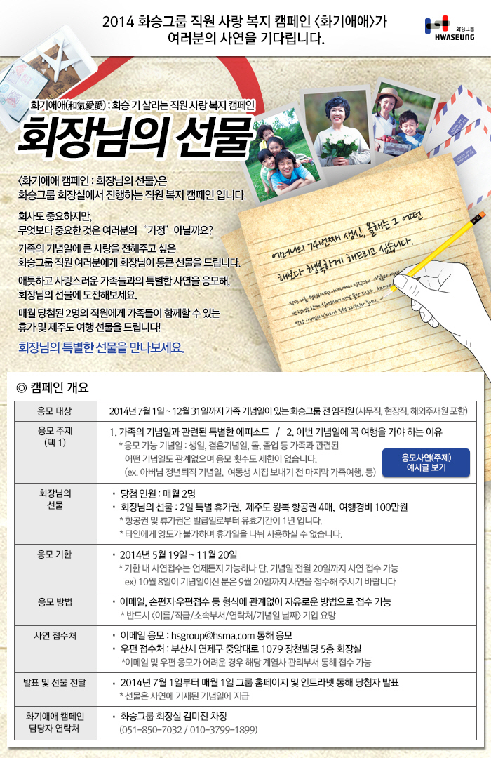 - 2014 화승그룹 직원사랑 복지 캠페인<화기애애>가 여러분의 사연을 기다립니다.